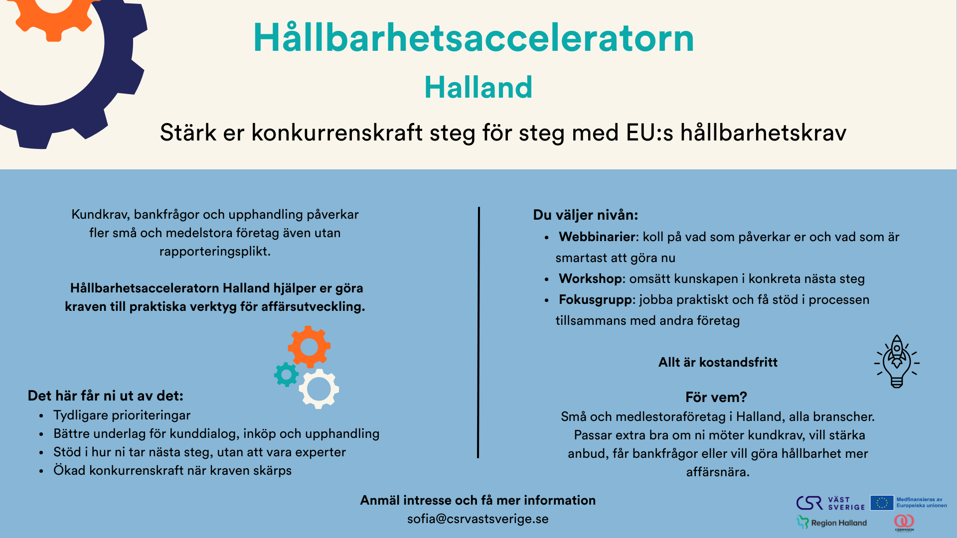 Maila sofia@csrvastsverige.se för mer information!