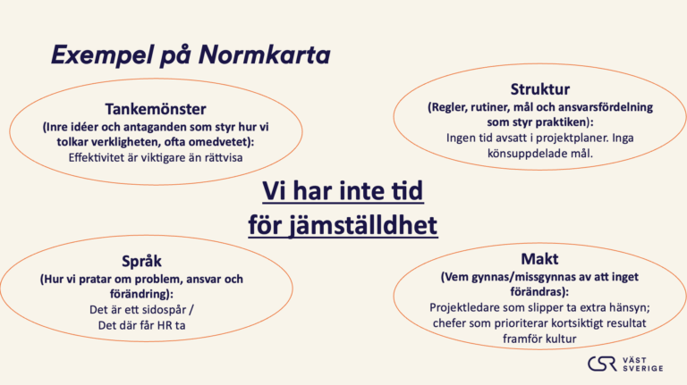 - Makt – Den som definierar vad som är ”kärnfråga” bestämmer agendan, vilket återspeglar en maktstruktur där jämställdhet nedprioriteras.